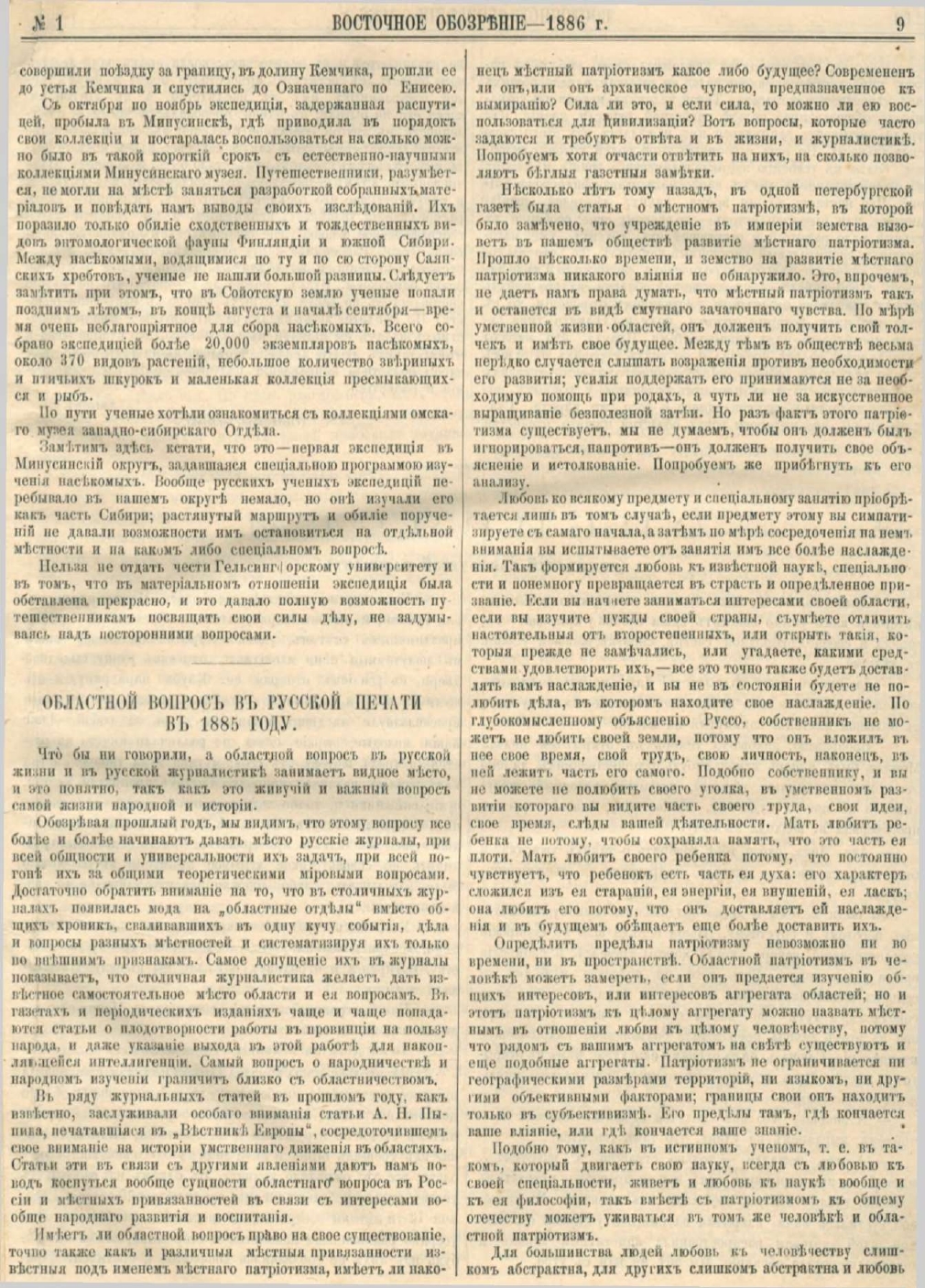 первого номера авторы представляют своё понимание Востока. Для них Восток, как и Запад, — пространство, обусловленное, в первую очередь, географическими препятствиями. Так, восточная граница Запада простирается от севера Уральских гор, по западному побережью Каспийского моря и до правого берега реки Инд на юге. На севере от реки Инд между Каспием, Уральскими горами и Алтаем расположена нейтральная территория, а всё остальное — Восток. Тут виден непривычный для нас факт, что территорию Ближнего Востока (Турция, Иран, Ирак и т. д.) авторы относят к Западу из-за единства культурных корней. А вот Сибирь, которая по большей части заселена европейцами, авторы из-за географического расположения относят к Востоку.